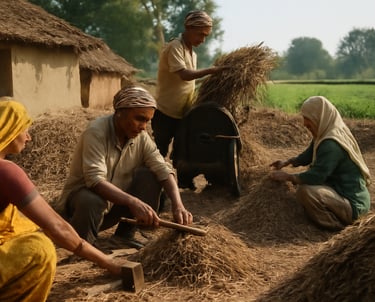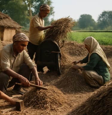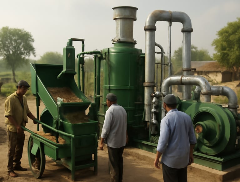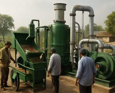 Locally sourced agricultural residues such as paddy straw, sugarcane trash, and groundnut shells.